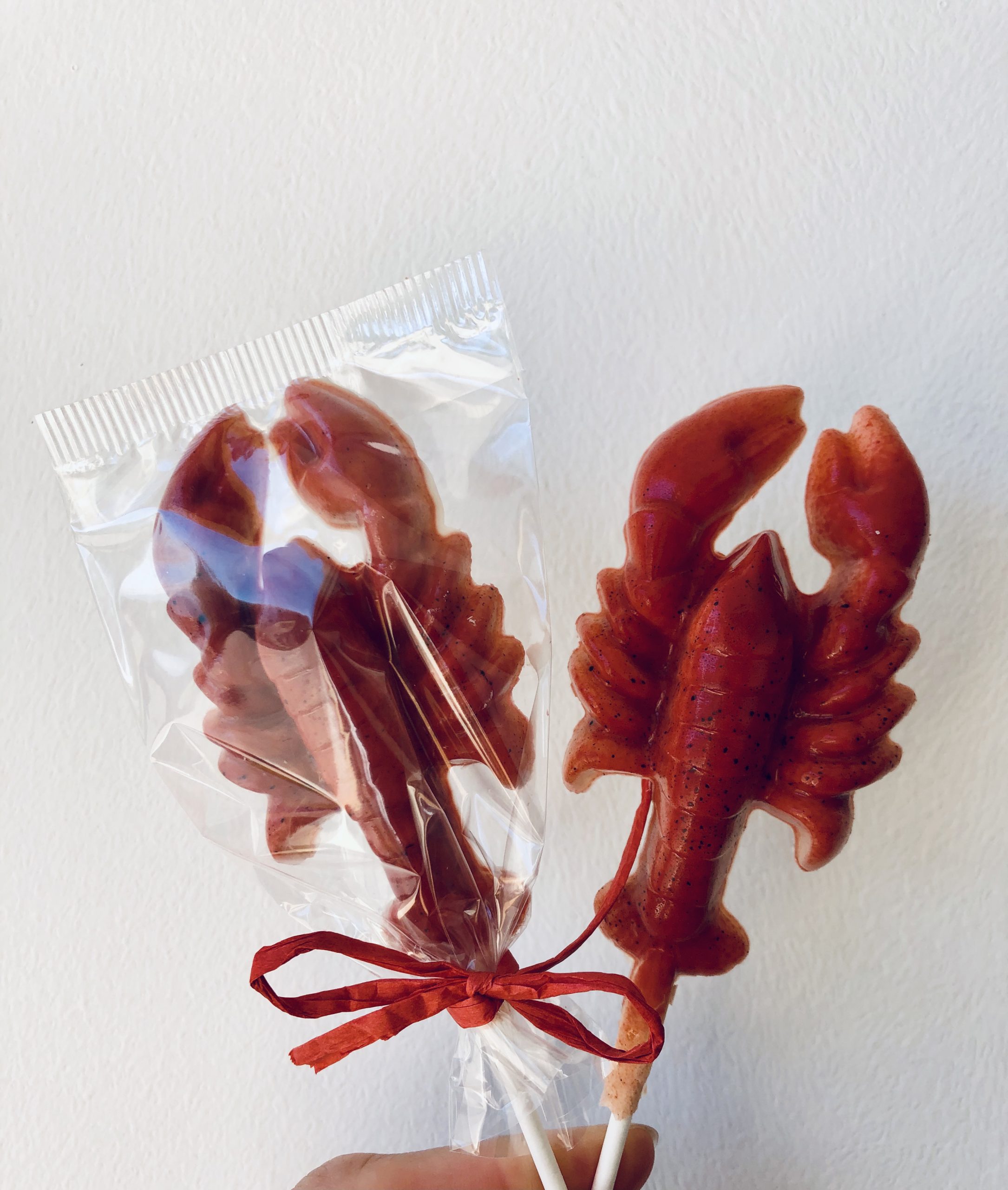 Les sucettes lapin, coq ou homard en chocolat noir, lait ou blanc